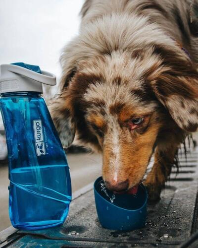 Cette gourde 2 en 1 est idéale pour gagner de la place dans un sac à dos. Une écuelle est intégrée à la bouteille, elle épouse les formes de la gourde et permet de contenir jusqu’à 250 ml d’eau. Pendant ce temps, le maître peut boire directement à la gourde d’une seule main, grâce à son ouverture facile par glissement. Plus besoin de dévisser une bouteille d’eau, s’hydrater et hydrater son chien devient un jeu d’enfant. La gourde a une contenance de 750 ml, elle ne contient ni PVC, ni BPA et peut être lavée au lave-vaisselle.