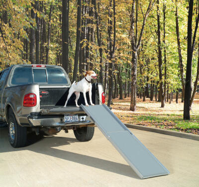 La rampe télescopique HAPPY RIDE™ XL permet aux grands chiens d’accéder à des espaces surélevés en toute sécurité et facilité. La surface d’accès de la rampe est plus large, antidérapante et dispose de rebords hauts pour que le chien puisse monter et descendre sans glisser ou tomber. Cette rampe est fabriquée à base d’aluminium et de plastique afin d’être légère et robuste (seulement 8 kg), tout en supportant une charge jusqu’à 136 kg. Le système coulissant permet d’ajuster la longueur de 119 à 221 cm et un loquet de sécurité verrouille la rampe pour un rangement aisé. Quatre pieds en caoutchouc stabilisent la rampe en cours d’utilisation. Une poignée permet de transporter la rampe en toute facilité.