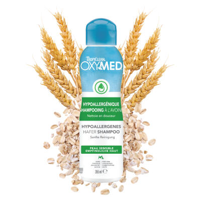 Le shampooing hypoallergénique à l’avoine OxyMed est spécialement conçu pour les animaux à la peau sensible et allergique. Sa formule douce, enrichie en vitamine E et en aloès, hydrate et revitalise la peau ainsi que le pelage. L’extrait d’avoine apaise efficacement les démangeaisons et procure un soulagement rapide. Pour renforcer l’efficacité et soulager immédiatement les démangeaisons, il est possible d’utiliser le spray antidémangeaisons OxyMed entre deux shampoings.