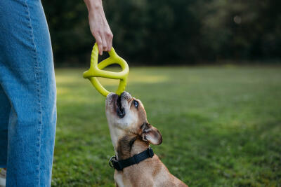 La gamme BOUNCE de Benebone est fabriquée en caoutchouc naturel et durable, résistant aux chiens les plus mordus. Robustes mais suffisamment souples pour stimuler la mastication, les jouets BOUNCE n’abîment pas les dents et contribuent à maintenir une dentition propre et saine. Ils peuvent également être utilisés glacés après un passage au congélateur. Le BOUNCE TUG est une variante du traditionnel jeu de la corde, l’un des jeux d’interaction les plus motivants pour de nombreux chiens. Souple et robuste, il permet de jouer en sécurité en gardant les mains éloignées des dents du chien. Le BOUNCE TUG aide à renforcer les muscles du dos, les abdominaux et les pattes arrière, et peut être utilisé avec des chiens adultes ou des chiots.