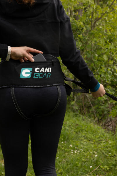 Le baudrier SYMBIOZ est doté d’une large assise dorsale permettant de répartir la pression et soulageant le dos. Cette large partie englobant le dos et les hanches est matelassée pour un confort optimal et équipée d’une doublure respirante de type Mesh pour une meilleure circulation de l’air. Le baudrier SYMBIOZ dispose de sangles d’entrejambe pour garantir un parfait maintien pendant l’activité. Le mousqueton coulissant sur sa sangle permet de maintenir un bon équilibre lorsque le chien change de direction. Une large poche de rangement est intégrée sur la partie dorsale du baudrier. Le baudrier est réglable pour un tour de taille de 81 à 145 cm.