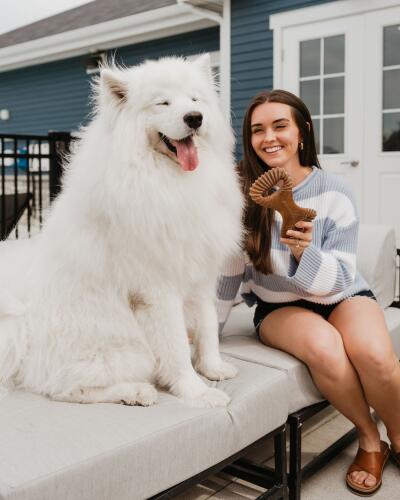 L’os DENTAL CHEW a été spécialement conçu pour aider à lutter contre le tartre. Ses extrémités crantées stimulent les gencives et nettoient en profondeur les dents. La forme incurvée permet au chien de bien maintenir l’os entre ses pattes. Sa saveur au bacon est très appréciée par le chien tout en restant inodore pour les humains. Pour une première utilisation, il est conseillé de frotter l’os sur une surface rugueuse afin d’en libérer les arômes.